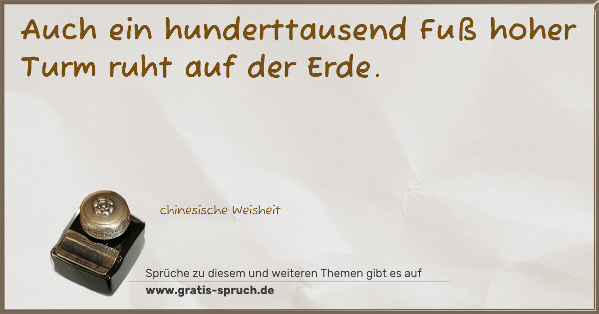 Auch ein hunderttausend Fuß hoher Turm ruht auf der Erde.