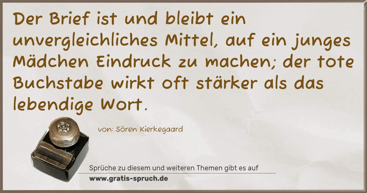 »Der Brief ist und bleibt ein unvergleichliches Mittel, auf ein junges Mädchen Eindruck zu machen; der tote Buchstabe wirkt oft stärker als das lebendige Wort.