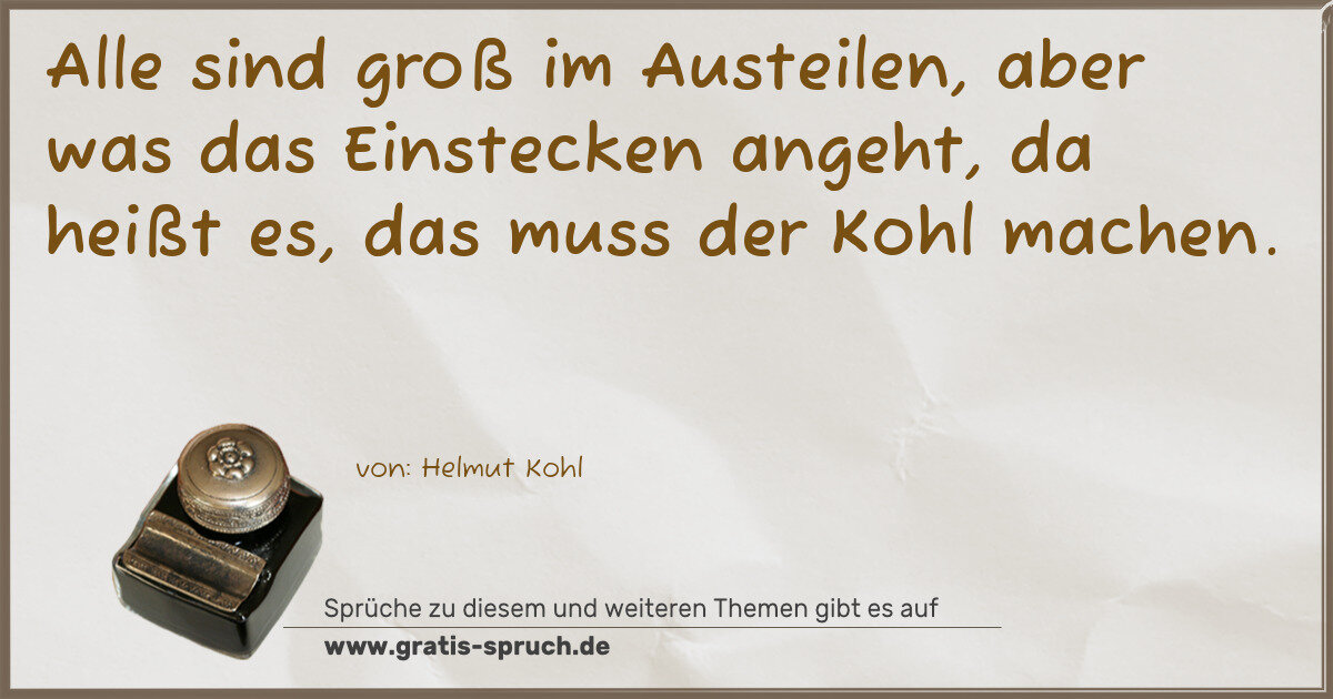 Alle sind groß im Austeilen, aber was das Einstecken angeht, da heißt es, das muss der Kohl machen.