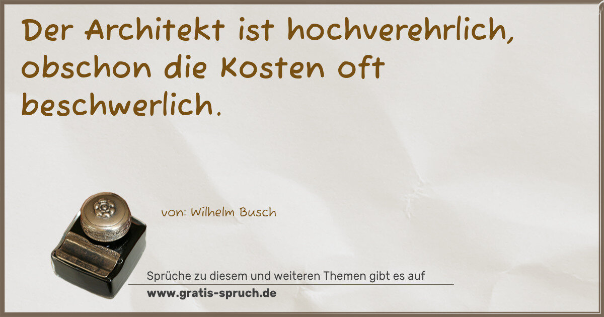 Der Architekt ist hochverehrlich, obschon die Kosten oft beschwerlich.