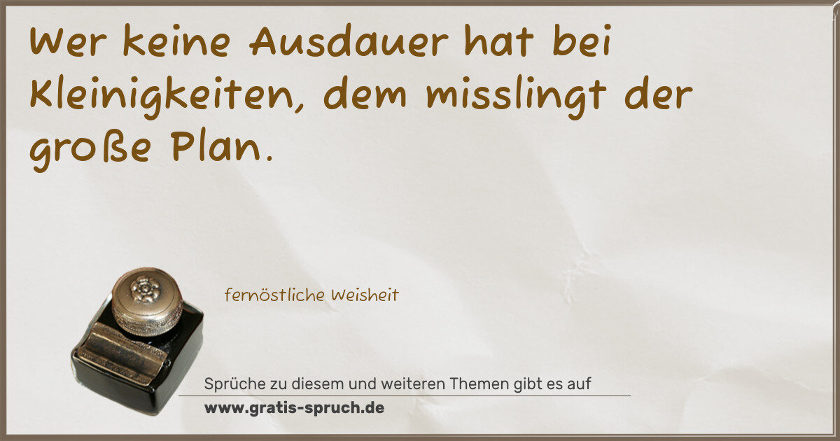 Wer keine Ausdauer hat bei Kleinigkeiten, dem misslingt der große Plan.