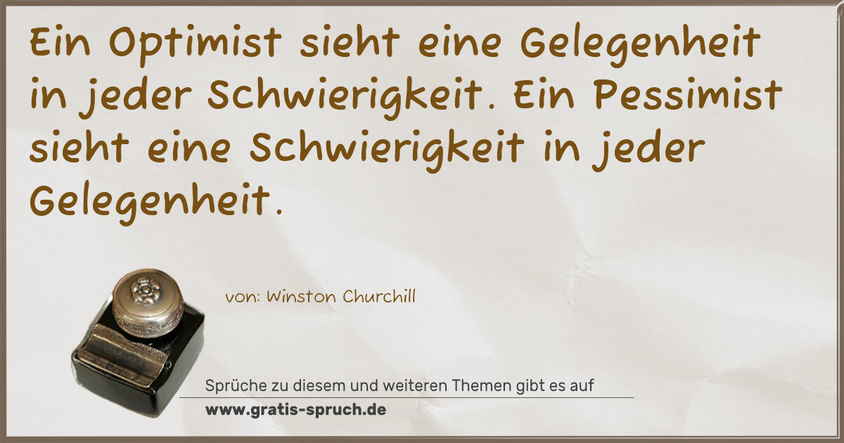 »Ein Optimist sieht eine Gelegenheit in jeder Schwierigkeit. Ein Pessimist sieht eine Schwierigkeit in jeder Gelegenheit.