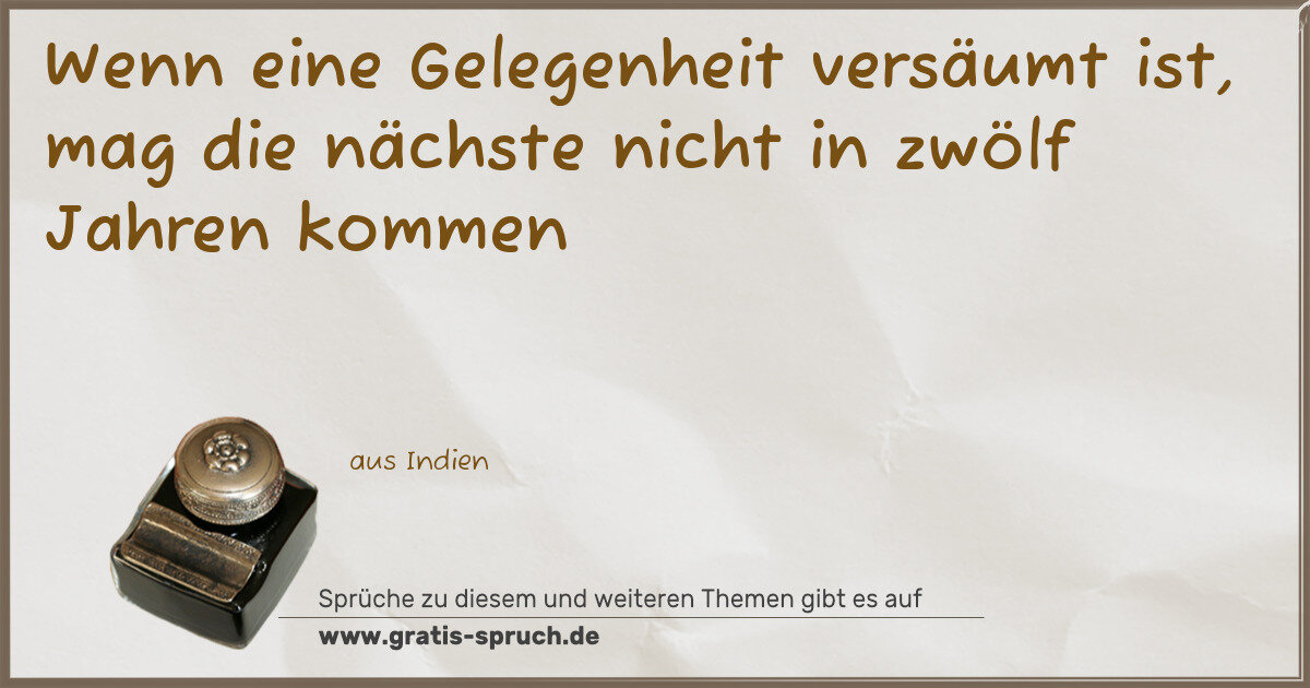 Wenn eine Gelegenheit versäumt ist, mag die nächste nicht in zwölf Jahren kommen