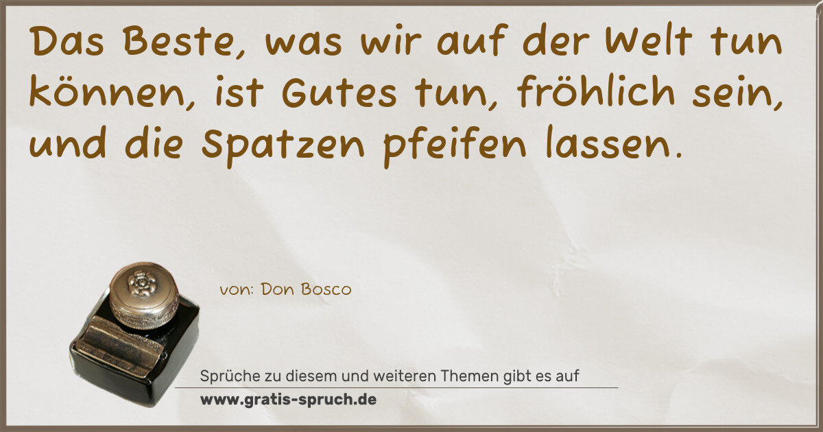 Das Beste, was wir auf der Welt tun können, ist Gutes tun, fröhlich sein, und die Spatzen pfeifen lassen.