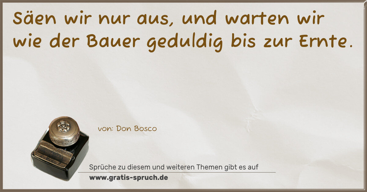 Säen wir nur aus, und warten wir wie der Bauer geduldig bis zur Ernte.