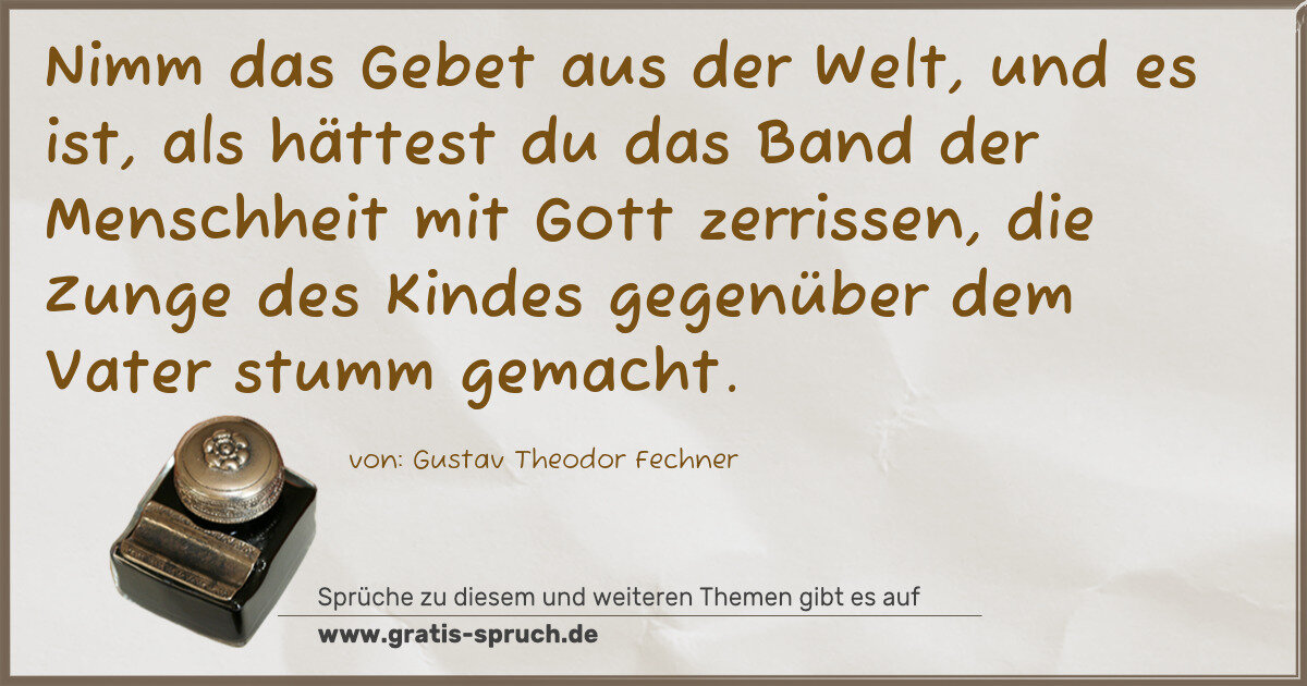 »Nimm das Gebet aus der Welt, und es ist, als hättest du das Band der Menschheit mit Gott zerrissen, die Zunge des Kindes gegenüber dem Vater stumm gemacht.