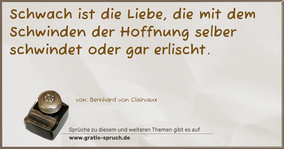 Schwach ist die Liebe, die mit dem Schwinden der Hoffnung selber schwindet oder gar erlischt.