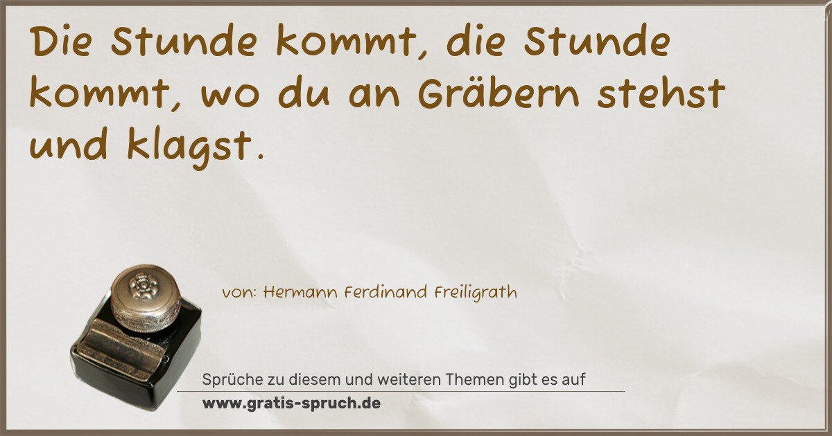 Die Stunde kommt, die Stunde kommt, wo du an Gräbern stehst und klagst.
