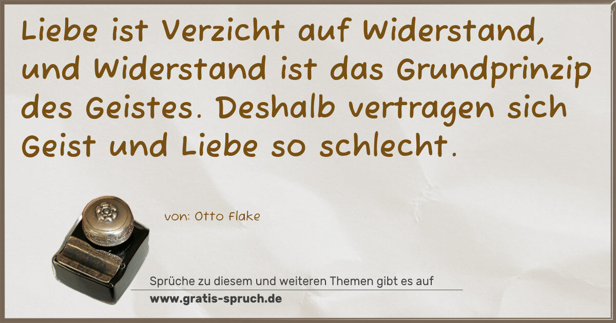 Liebe ist Verzicht auf Widerstand, und Widerstand ist das Grundprinzip des Geistes. Deshalb vertragen sich Geist und Liebe so schlecht.