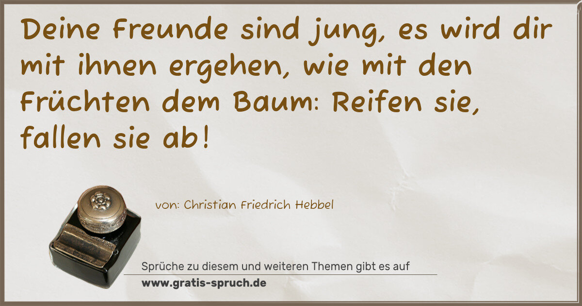 Deine Freunde sind jung, es wird dir mit ihnen ergehen, wie mit den Früchten dem Baum: Reifen sie, fallen sie ab!
