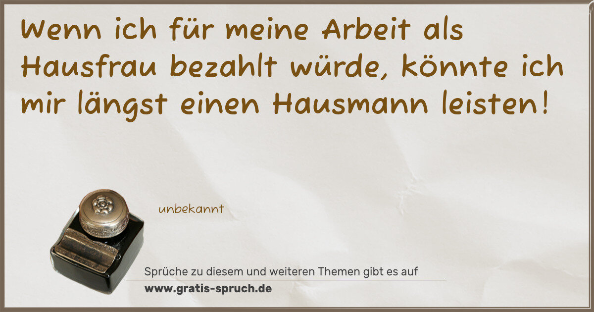 Wenn ich für meine Arbeit als Hausfrau bezahlt würde, könnte ich mir längst einen Hausmann leisten!