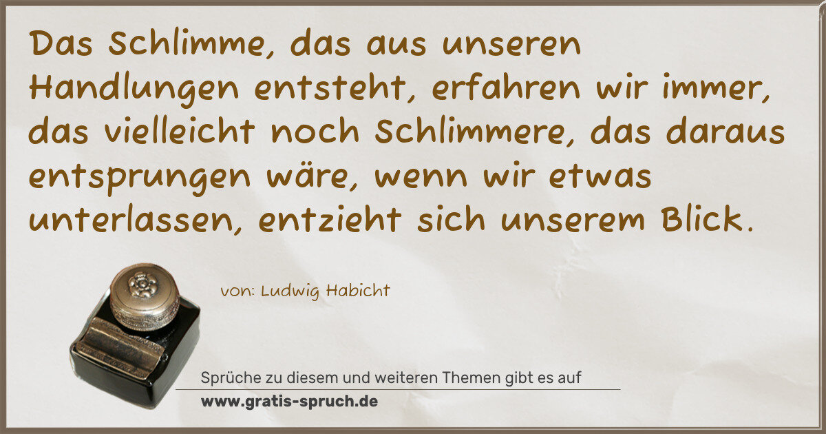 das vielleicht noch Schlimmere, das daraus entsprungen wäre, wenn wir etwas unterlassen, entzieht sich unserem Blick.