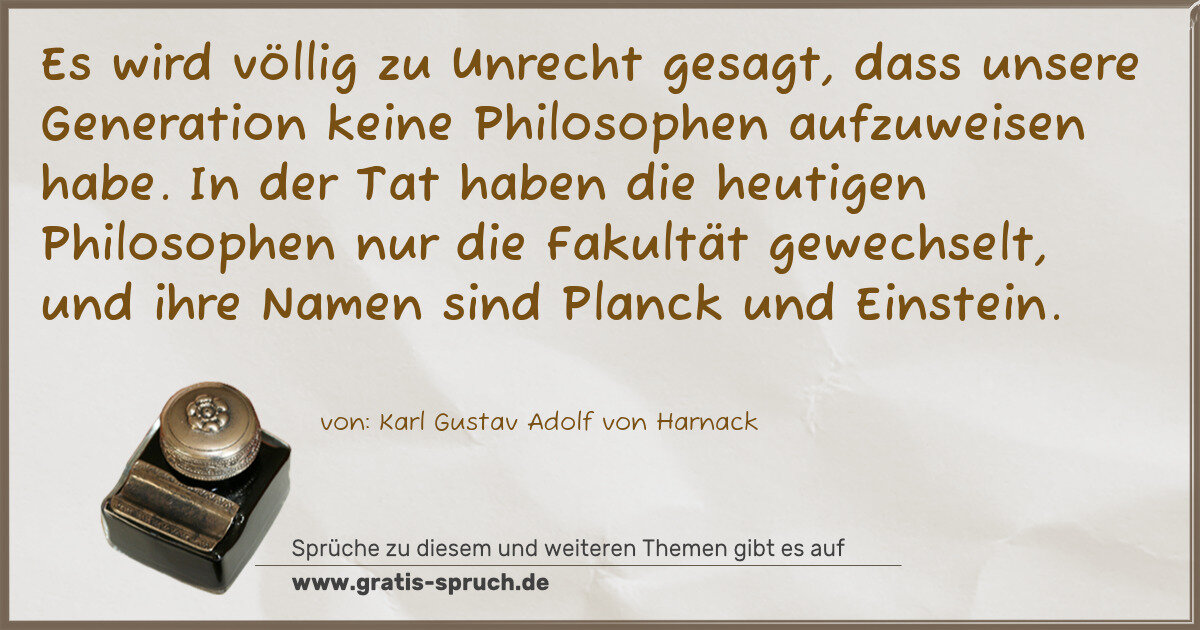 »Es wird völlig zu Unrecht gesagt, dass unsere Generation keine Philosophen aufzuweisen habe. In der Tat haben die heutigen Philosophen nur die Fakultät gewechselt, und ihre Namen sind Planck und Einstein.