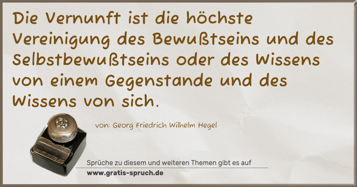 »Die Vernunft ist die höchste Vereinigung des Bewußtseins und des Selbstbewußtseins oder des Wissens von einem Gegenstande und des Wissens von sich.