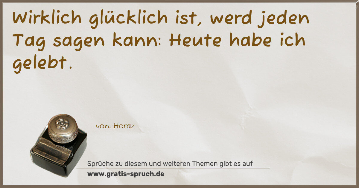 Wirklich glücklich ist, werd jeden Tag sagen kann: Heute habe ich gelebt.