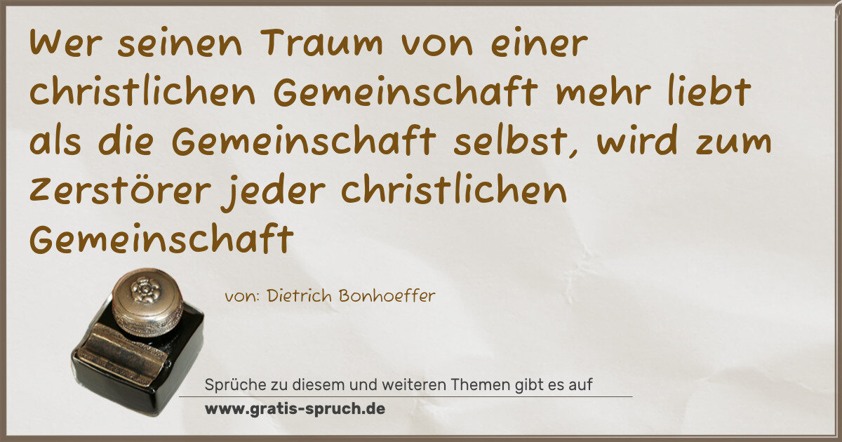 »Wer seinen Traum von einer christlichen Gemeinschaft mehr liebt als die Gemeinschaft selbst, wird zum Zerstörer jeder christlichen Gemeinschaft