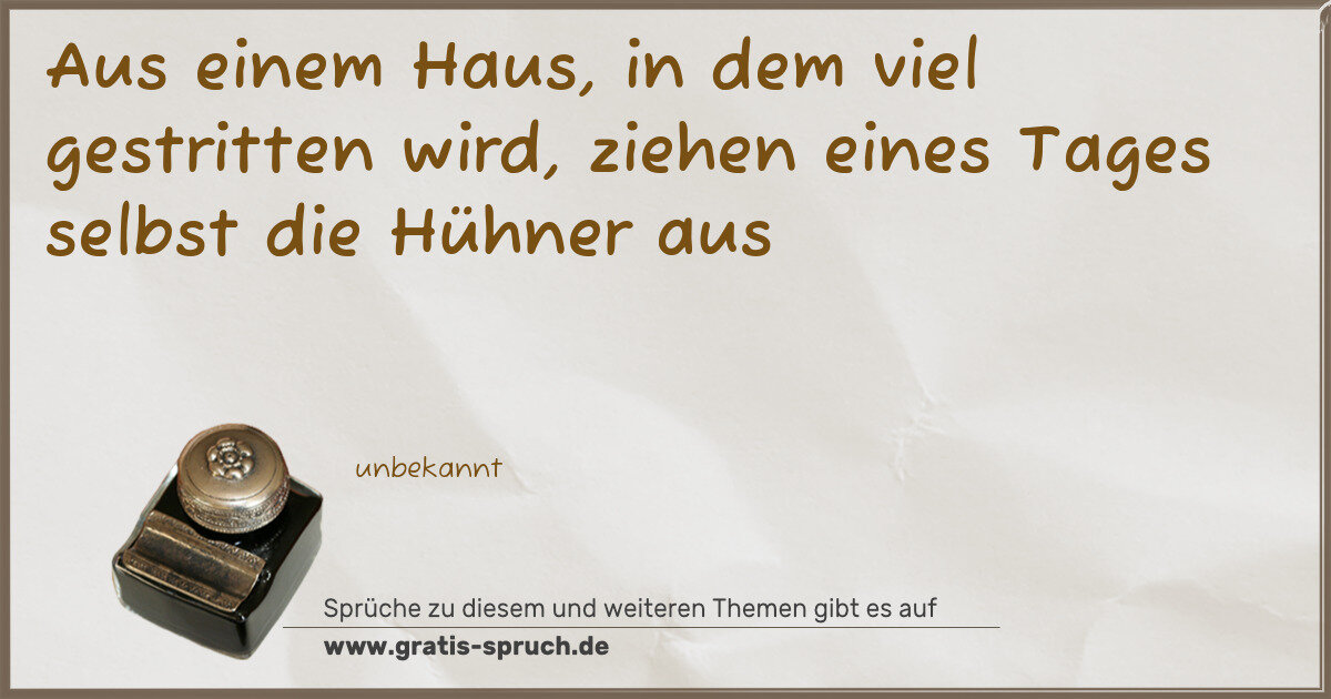 Aus einem Haus, in dem viel gestritten wird, ziehen eines Tages selbst die Hühner aus