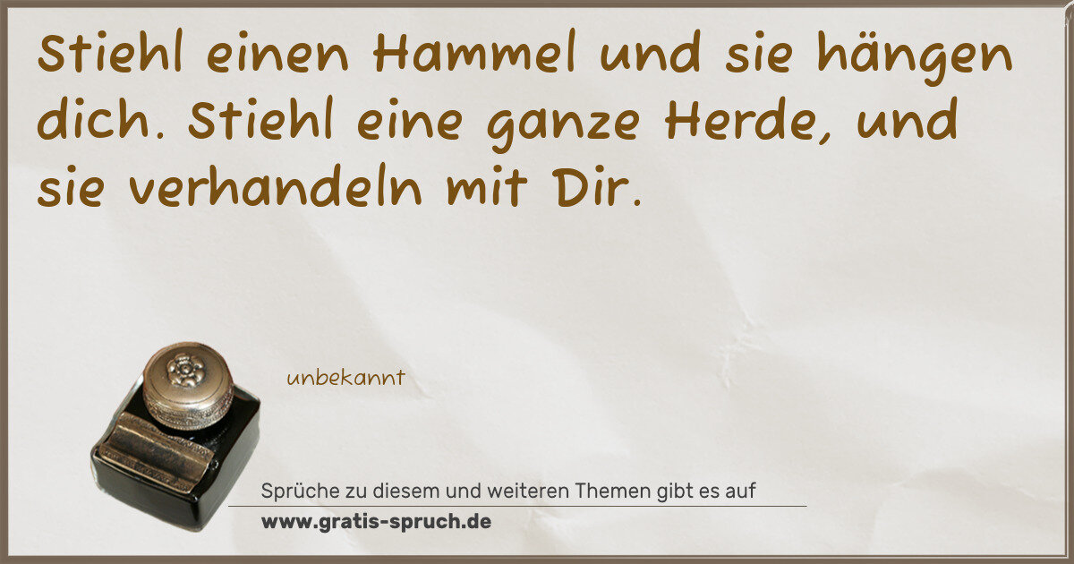Stiehl einen Hammel und sie hängen dich. Stiehl eine ganze Herde, und sie verhandeln mit Dir.