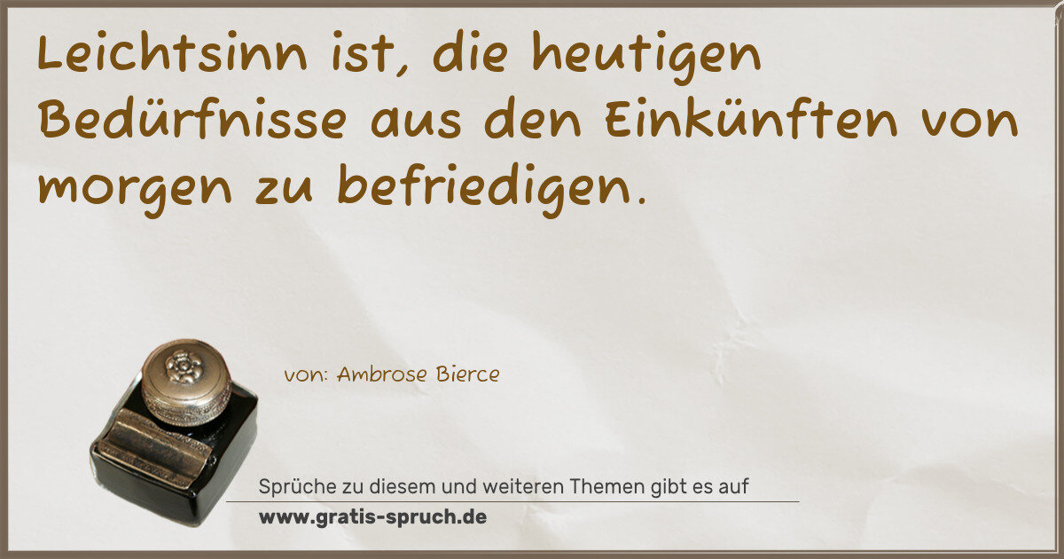 Leichtsinn ist, die heutigen Bedürfnisse aus den Einkünften von morgen zu befriedigen.