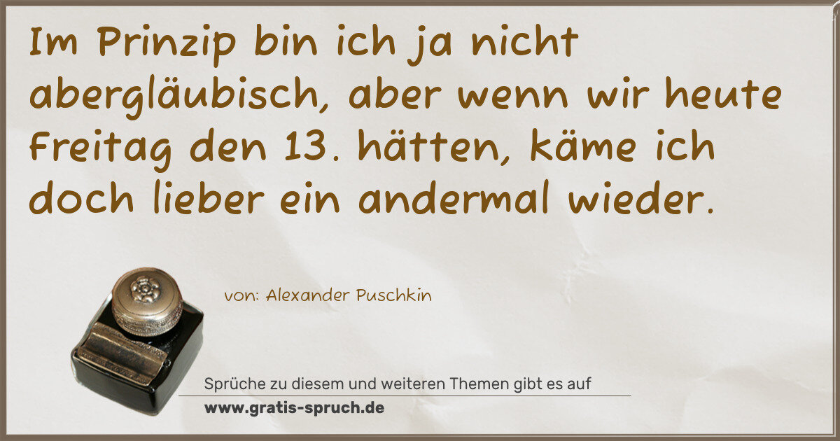 Im Prinzip bin ich ja nicht abergläubisch, aber wenn wir heute Freitag den 13. hätten, käme ich doch lieber ein andermal wieder.