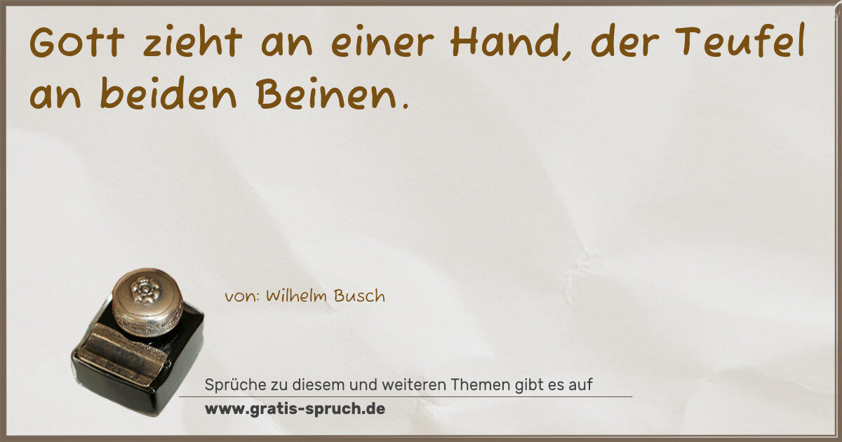 Gott zieht an einer Hand, der Teufel an beiden Beinen.