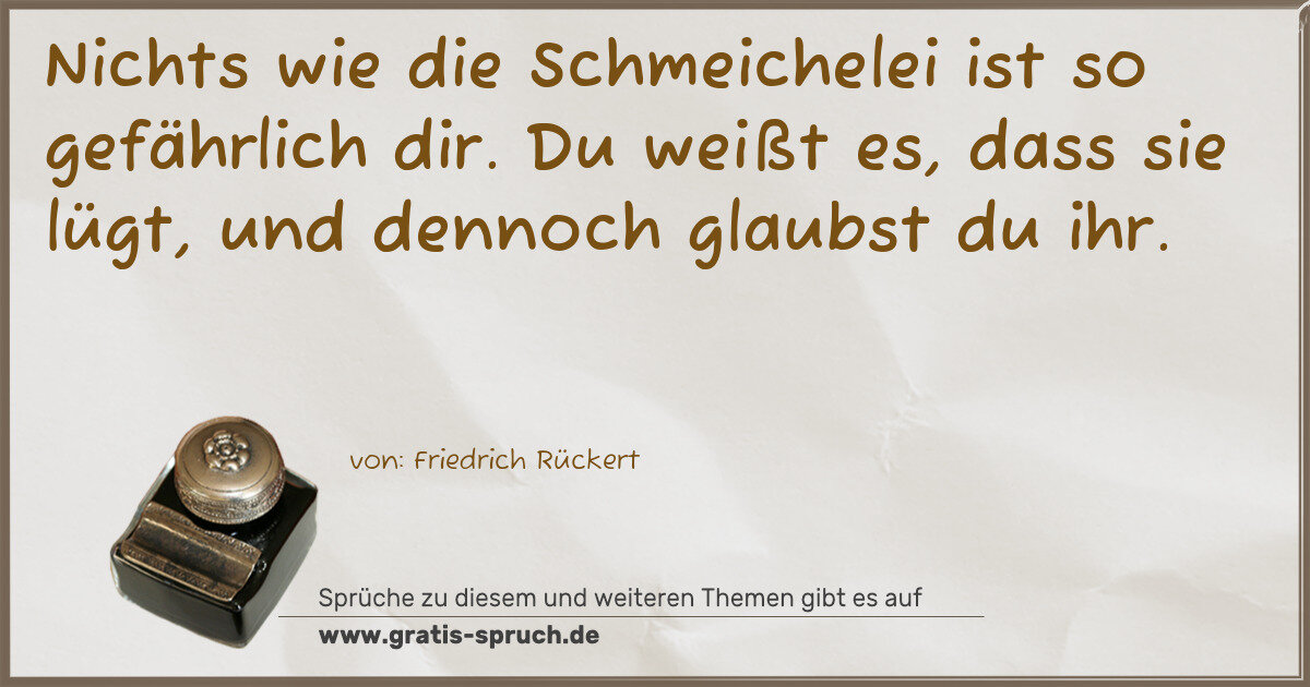 Nichts wie die Schmeichelei ist so gefährlich dir. Du weißt es, dass sie lügt, und dennoch glaubst du ihr.