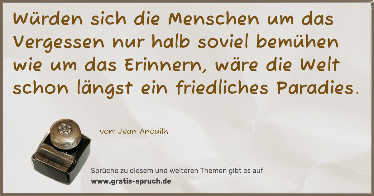 Würden sich die Menschen um das Vergessen nur halb soviel bemühen wie um das Erinnern, wäre die Welt schon längst ein friedliches Paradies.