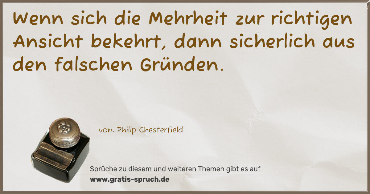 Wenn sich die Mehrheit zur richtigen Ansicht bekehrt, dann sicherlich aus den falschen Gründen.