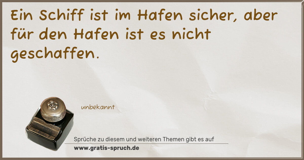 Ein Schiff ist im Hafen sicher, aber für den Hafen ist es nicht geschaffen.