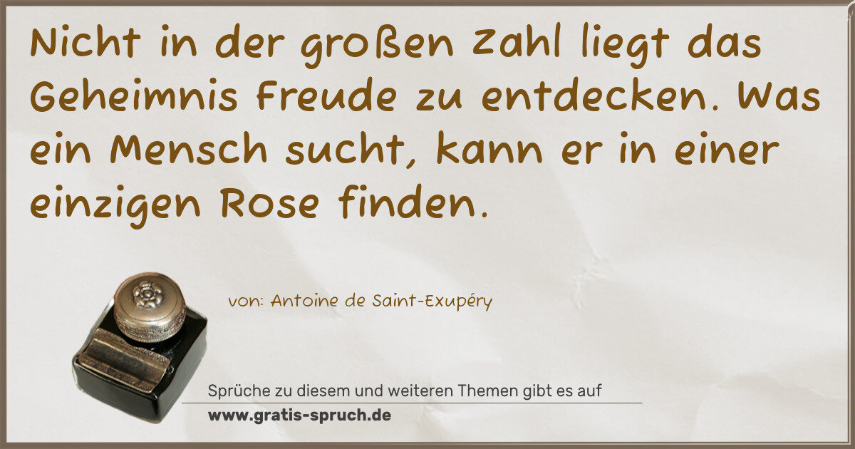 Nicht in der großen Zahl liegt das Geheimnis Freude zu entdecken. Was ein Mensch sucht, kann er in einer einzigen Rose finden.