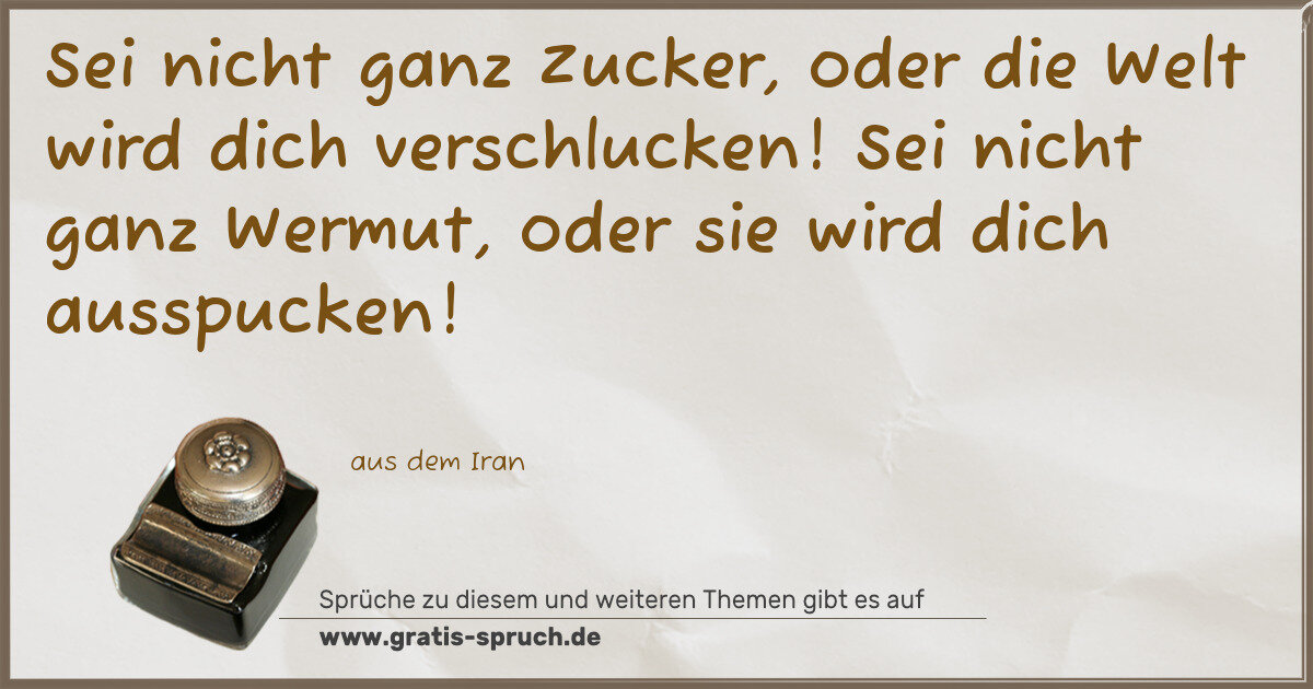 Sei nicht ganz Zucker, oder die Welt wird dich verschlucken! Sei nicht ganz Wermut, oder sie wird dich ausspucken!