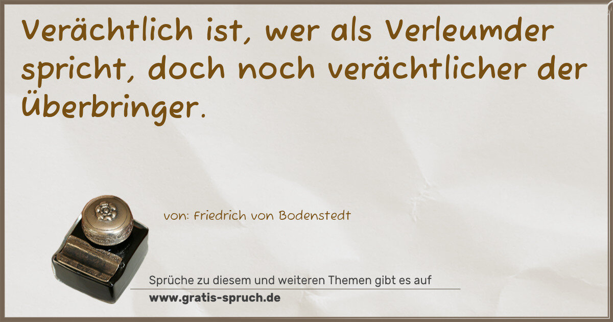 Verächtlich ist, wer als Verleumder spricht, doch noch verächtlicher der Überbringer.
