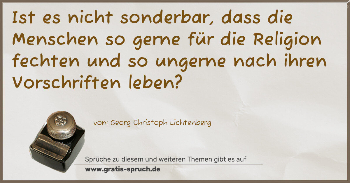 Ist es nicht sonderbar, dass die Menschen so gerne für die Religion fechten und so ungerne nach ihren Vorschriften leben?