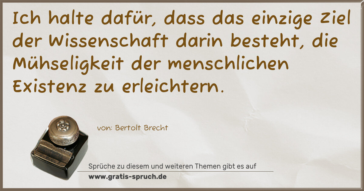 Ich halte dafür, dass das einzige Ziel der Wissenschaft darin besteht, die Mühseligkeit der menschlichen Existenz zu erleichtern.