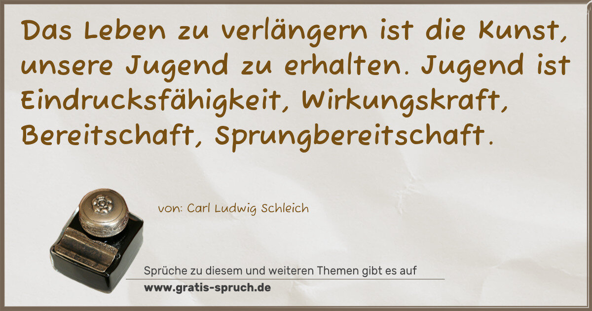 »Das Leben zu verlängern ist die Kunst, unsere Jugend zu erhalten. Jugend ist Eindrucksfähigkeit, Wirkungskraft, Bereitschaft, Sprungbereitschaft.