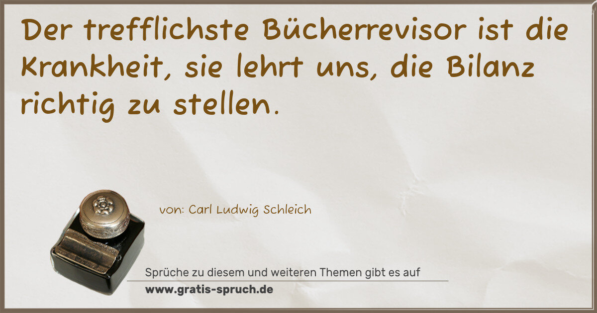 Der trefflichste Bücherrevisor ist die Krankheit, sie lehrt uns, die Bilanz richtig zu stellen.