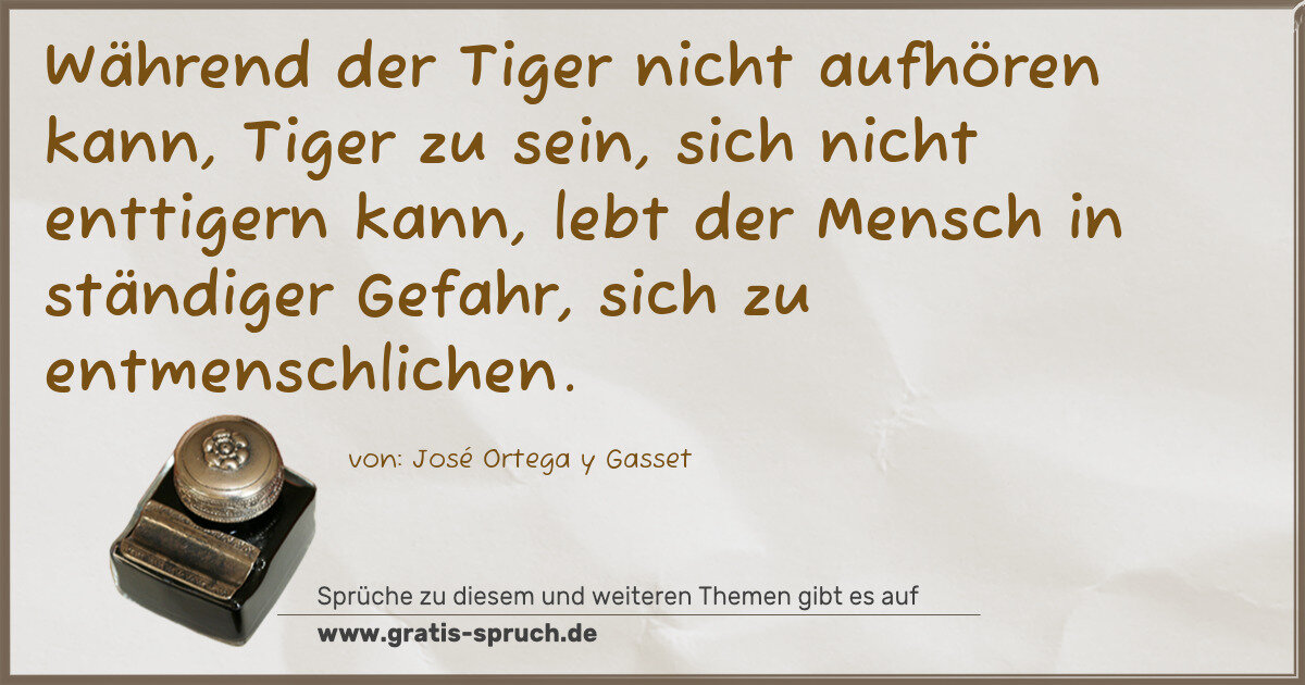 »Während der Tiger nicht aufhören kann, Tiger zu sein, sich nicht enttigern kann, lebt der Mensch in ständiger Gefahr, sich zu entmenschlichen.