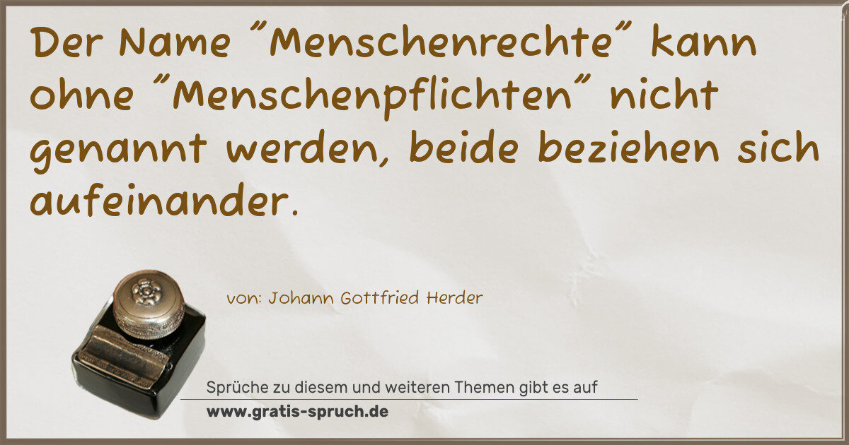 Der Name "Menschenrechte" kann ohne "Menschenpflichten" nicht genannt werden, beide beziehen sich aufeinander.