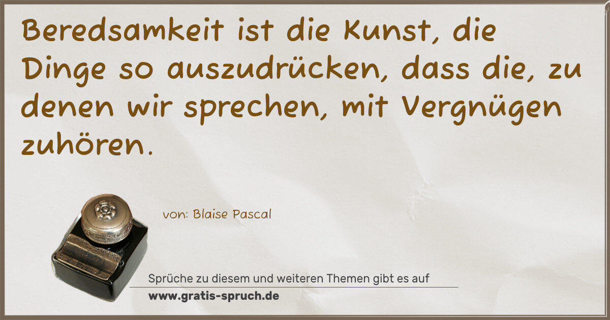 Beredsamkeit ist die Kunst, die Dinge so auszudrücken, dass die, zu denen wir sprechen, mit Vergnügen zuhören.