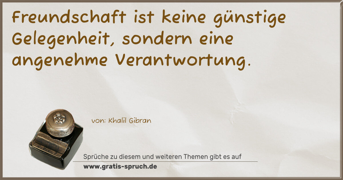 Freundschaft ist keine günstige Gelegenheit, sondern eine angenehme Verantwortung.