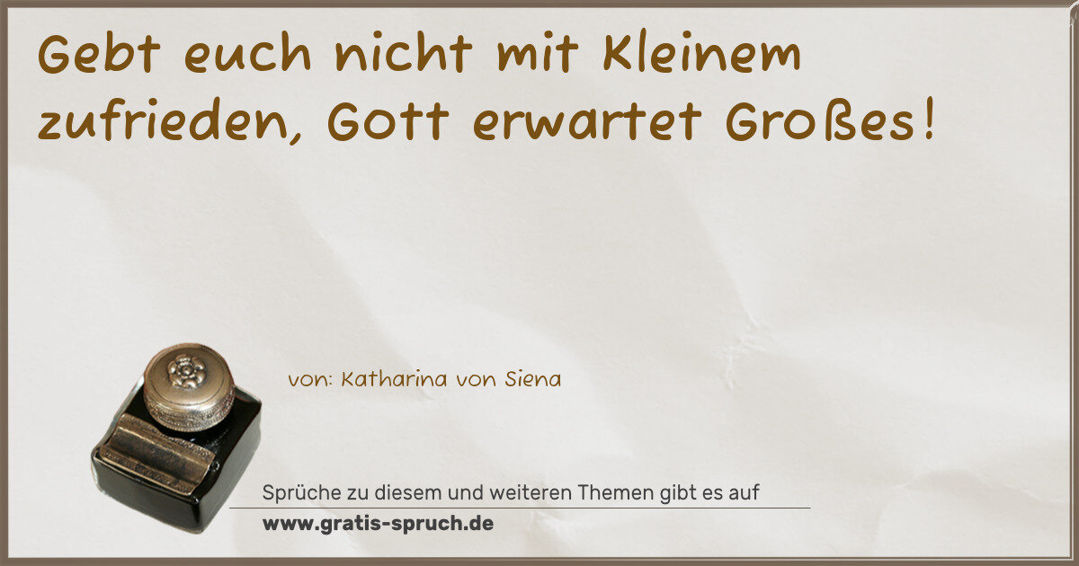 Gebt euch nicht mit Kleinem zufrieden, Gott erwartet Großes!