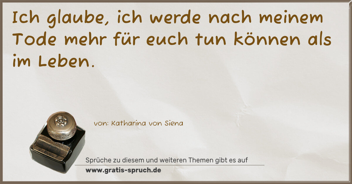 Ich glaube, ich werde nach meinem Tode mehr für euch tun können als im Leben.