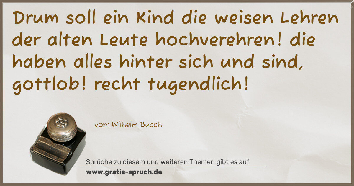 Drum soll ein Kind die weisen Lehren der alten Leute hochverehren! die haben alles hinter sich und sind, gottlob! recht tugendlich!