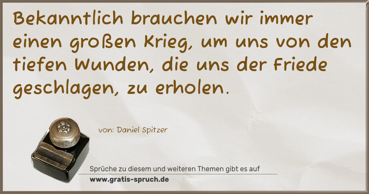 Bekanntlich brauchen wir immer einen großen Krieg, um uns von den tiefen Wunden, die uns der Friede geschlagen, zu erholen.