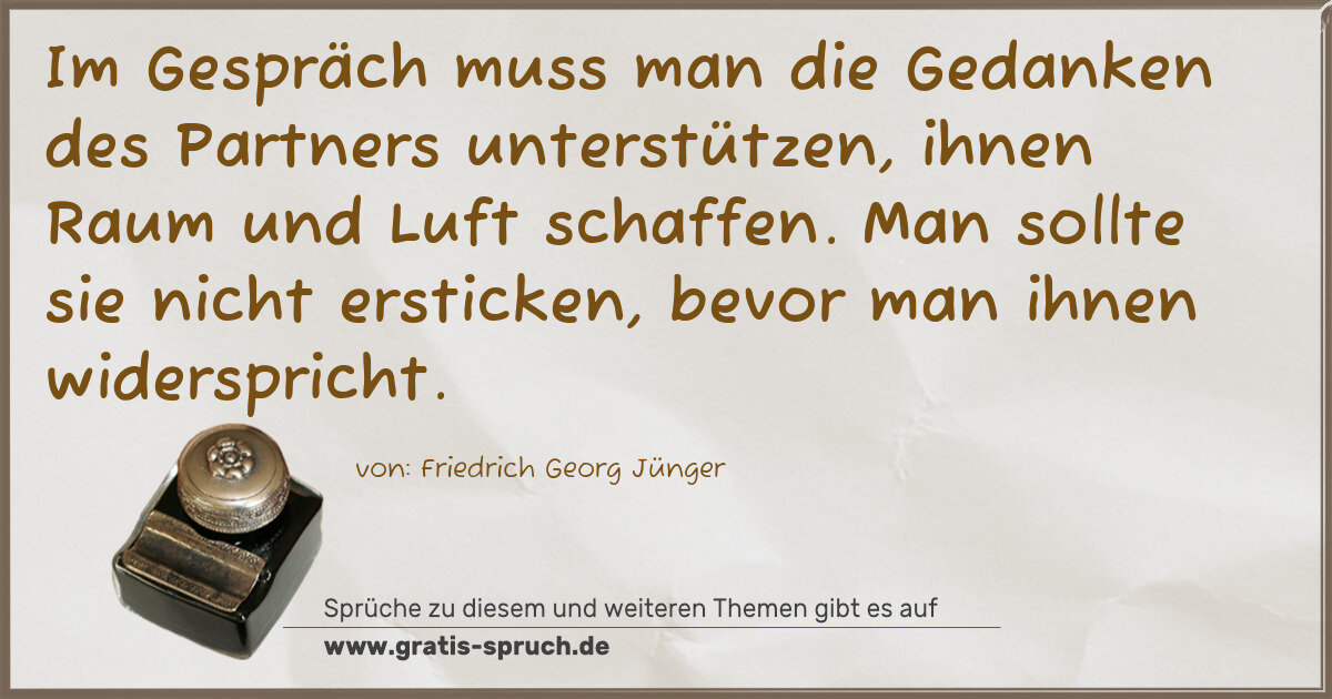 »Im Gespräch muss man die Gedanken des Partners unterstützen, ihnen Raum und Luft schaffen. Man sollte sie nicht ersticken, bevor man ihnen widerspricht.