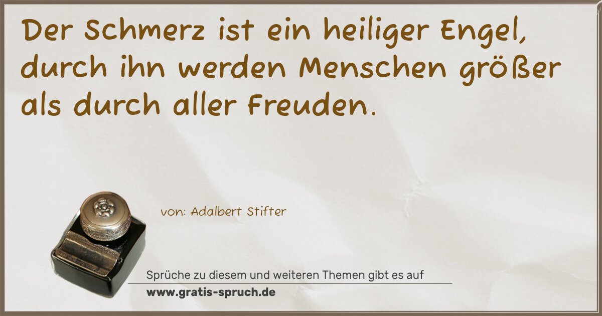 Der Schmerz ist ein heiliger Engel, durch ihn werden Menschen größer als durch aller Freuden.