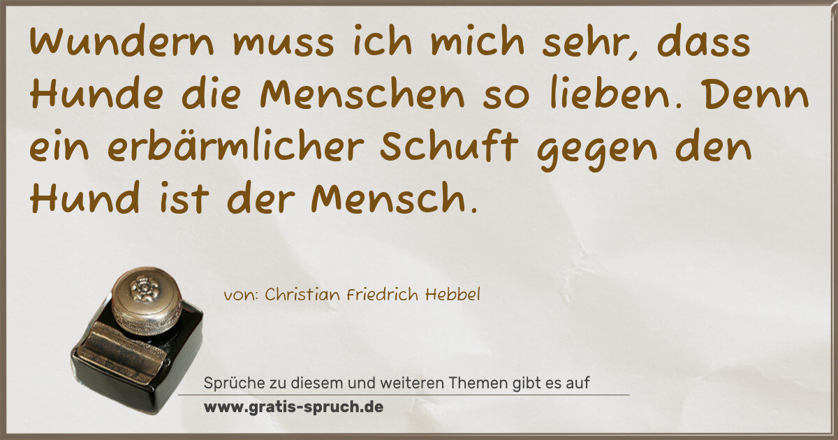 Wundern muss ich mich sehr, dass Hunde die Menschen so lieben. Denn ein erbärmlicher Schuft gegen den Hund ist der Mensch.