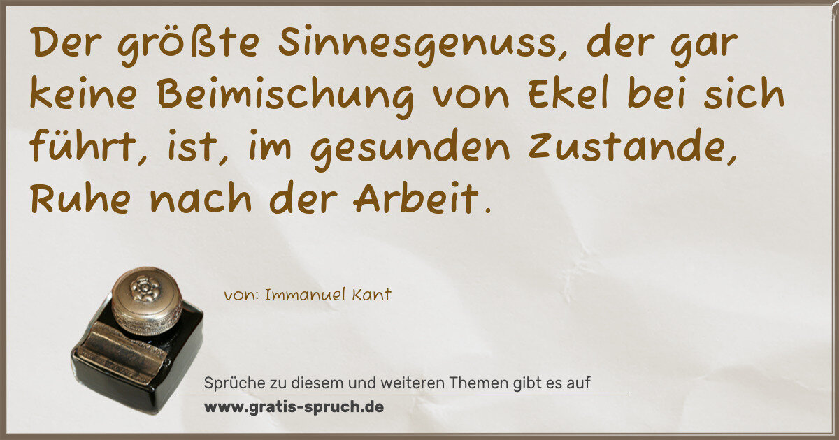 »Der größte Sinnesgenuss, der gar keine Beimischung von Ekel bei sich führt, ist, im gesunden Zustande, Ruhe nach der Arbeit.