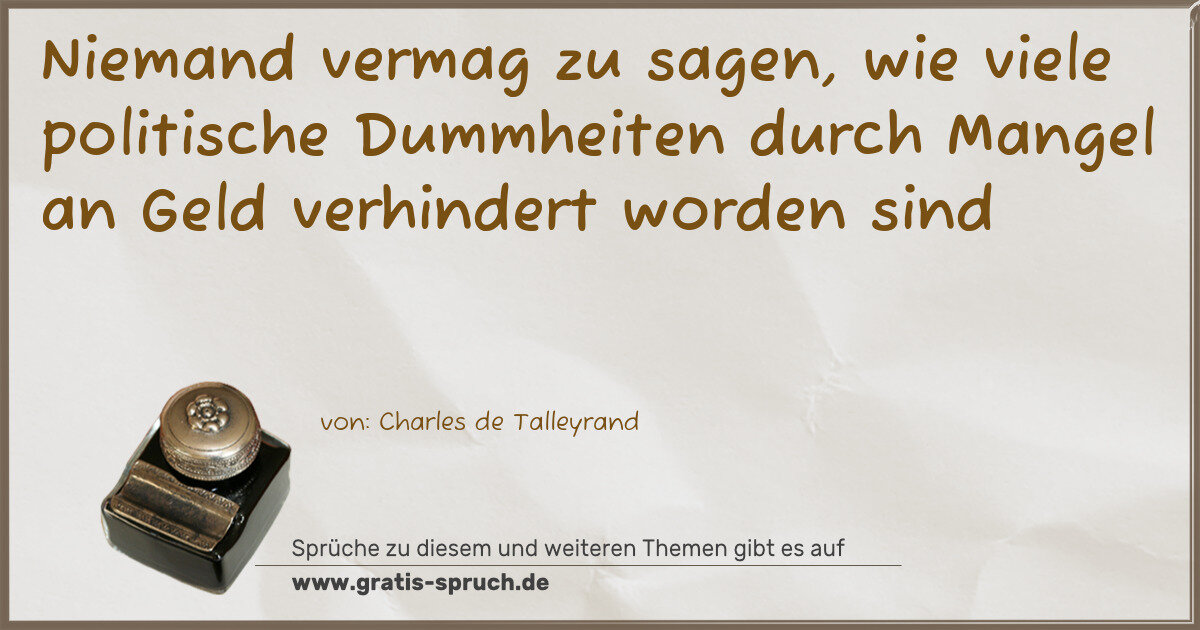 Niemand vermag zu sagen, wie viele politische Dummheiten durch Mangel an Geld verhindert worden sind