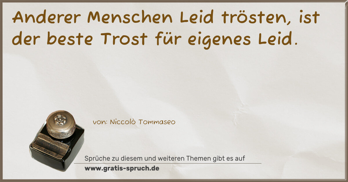 Anderer Menschen Leid trösten, ist der beste Trost für eigenes Leid.